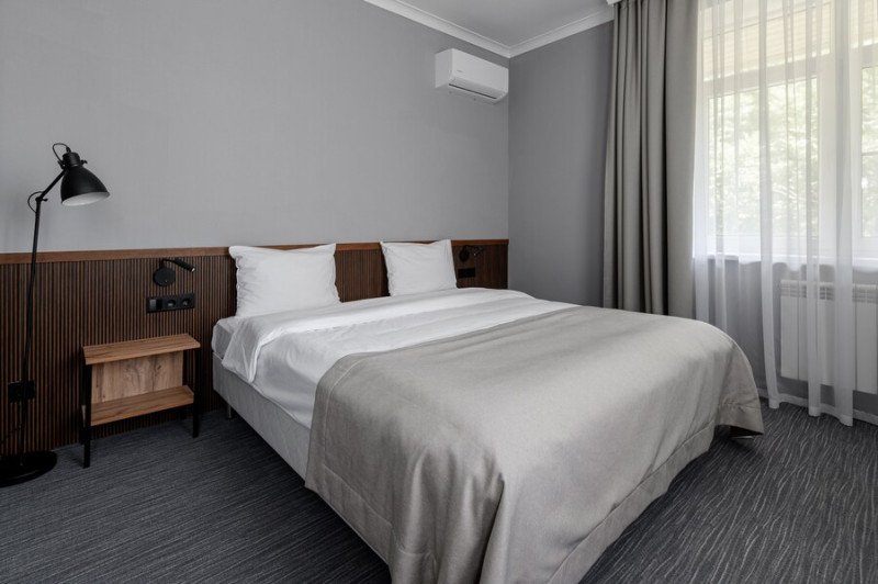 Комфортабельные номера с современной функциональной мебелью с одной двуспальной или двумя односпальными кроватями. В номерах расположены диваны, которые можно использовать как полноценное спальное место.