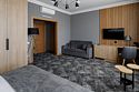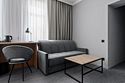 Комфортный двухкомнатный номер с современной функциональной мебелью. В номерах расположены диваны, которые можно использовать как полноценное спальное место.