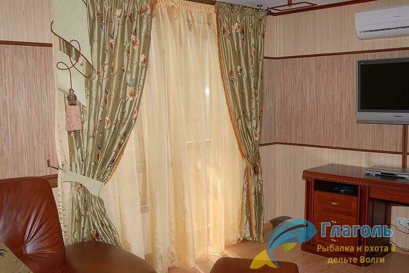 Плавучая рыболовно-охотничья база «Глаголь» пришвартована к берегу собственного острова в Володарском районе - 20 км на юг от поселка Зеленга по течению Молобелинского банка. Это около 80 км от Астрахани.