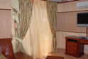 Апартаменты состоят из двух комнат: гостиной и спальни. Туалетная комната: душ, умывальник, унитаз, зеркало, фен. В гостиной – диван, кондиционер, шкаф-купе, журнальный столик, два пуфика, рабочий стол, холодильник-бар, ТВ, DVD, вешалка для одежды, зеркало, балкон. В спальне – двуспальная кровать, две прикроватные тумбочки, трюмо с зеркалом, ТВ, DVD, кондиционер, телефон. Индивидуальная лоджия, кресла для отдыха.