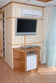 Всего (5 номеров). Двухместные номера, в номере две односпальные кровати, столик, шкаф для одежды, ТВ, DVD, два стула, кондиционер, телефон. В туалетной комнате: душ, унитаз, раковина, зеркало, фен.