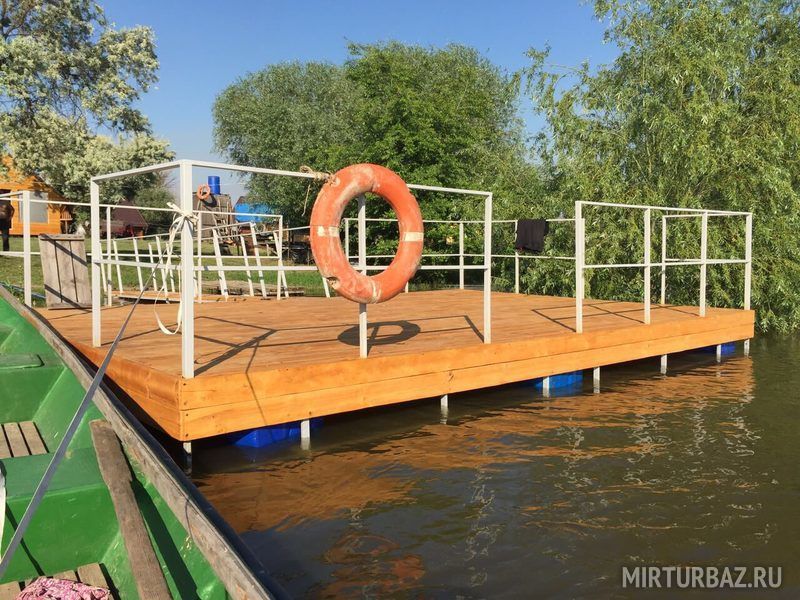 Собственный причал на берегу и водный транспорт.