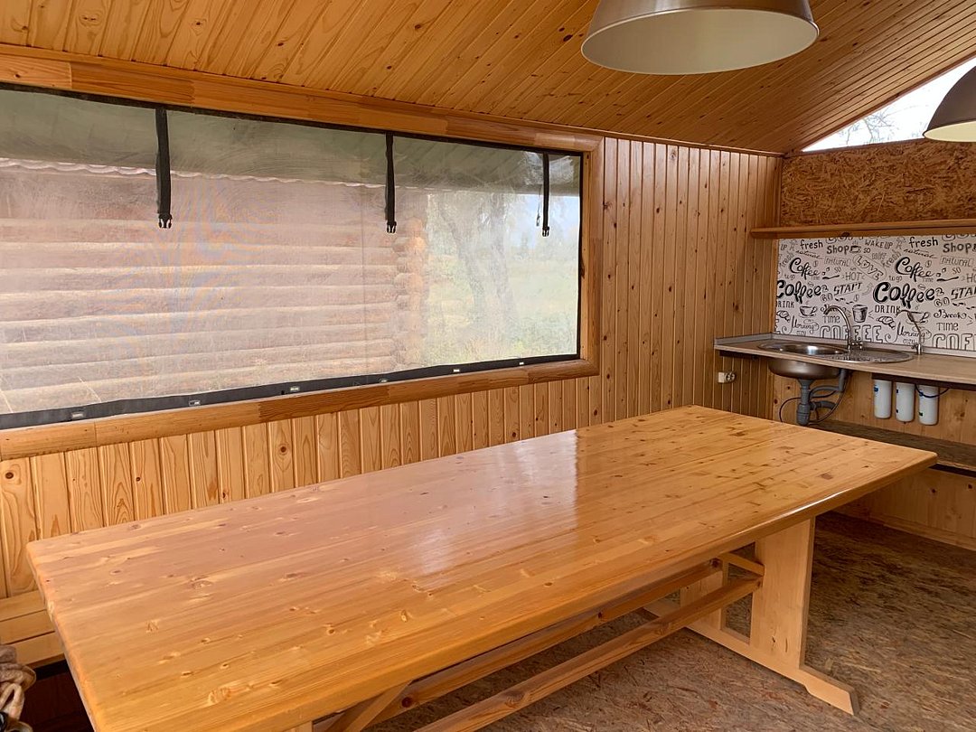 На территории комплекса имеется баня, в которой отдыхающие могут попариться по лучшим русским традициям. Для приготовления пищи используется общая кухня, а также зона с мангалом с беседкой.