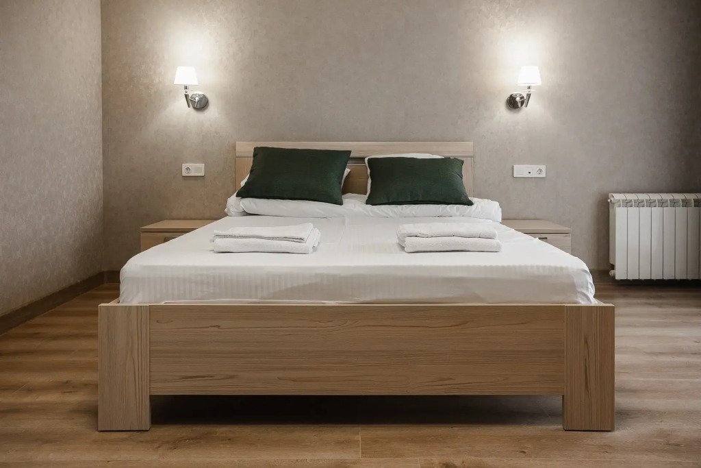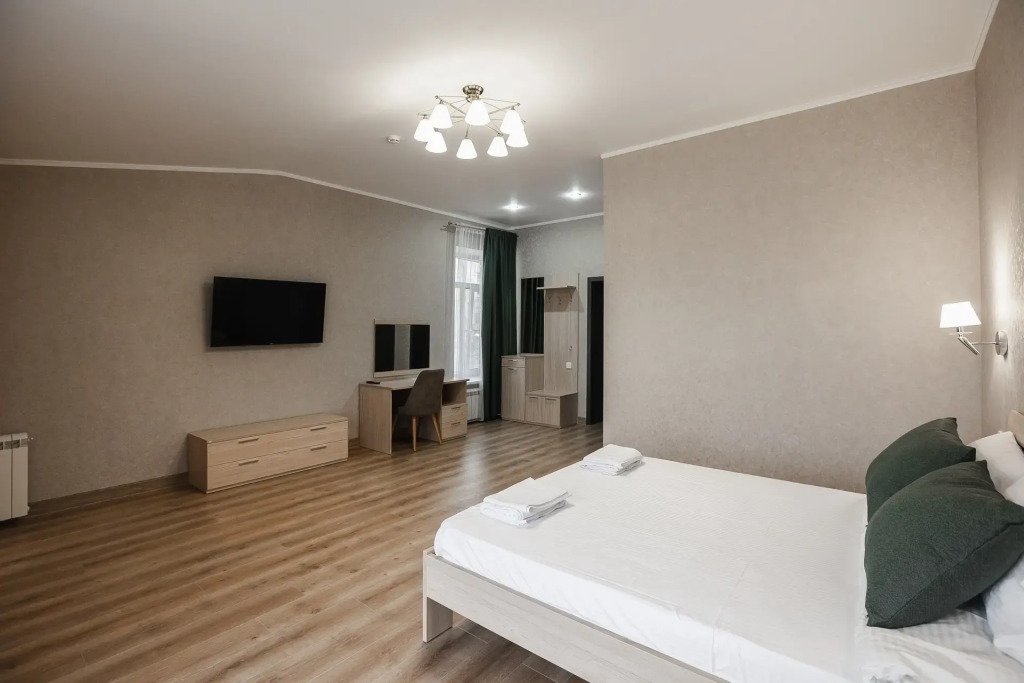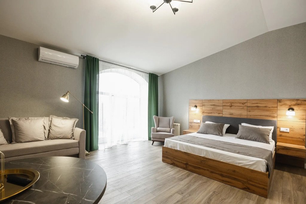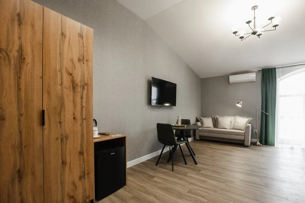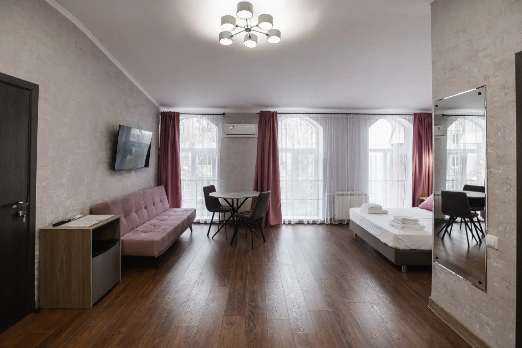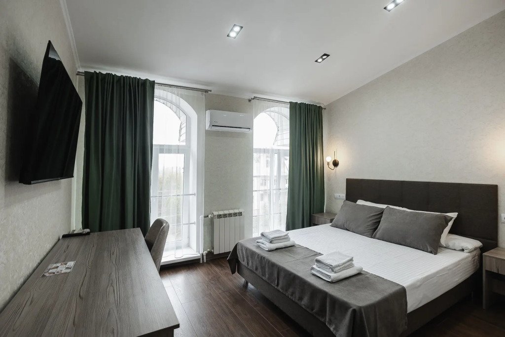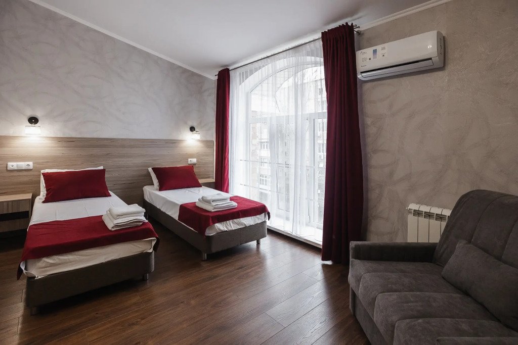 Все номера оснащены бесплатным Wi-Fi, сплит-системой, холодильником, чайником, феном, местом для принятия пищи.