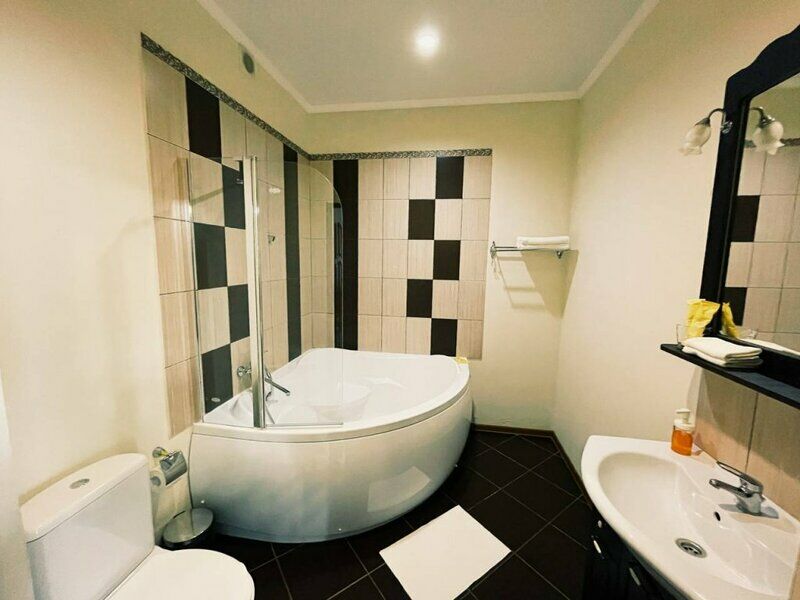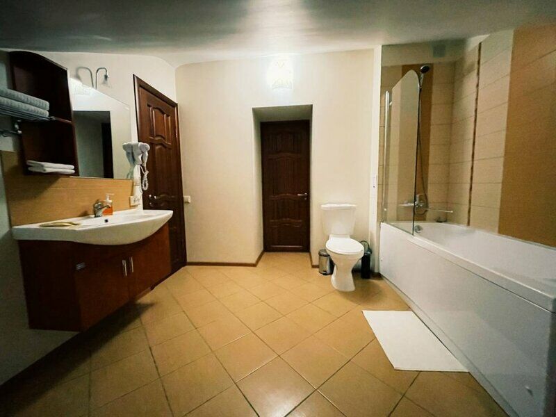 Мы жили на 2-м этаже в полулюксе. Номер большой, просторный, светлый, 2-х комнатный. Санузел просторный.