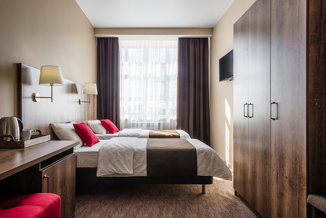 Уютный номер оборудован двумя отдельными кроватями, собственной ванной комнатой со всеми необходимыми туалетными принадлежностями и феном. В номере предусмотрены звукоизоляция, система кондиционирования и вентиляции, электрочайник, холодильник и телевизор.Услуги и удобства
