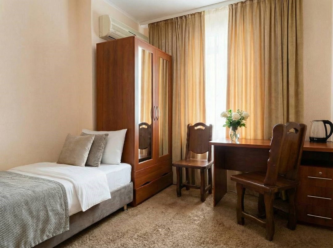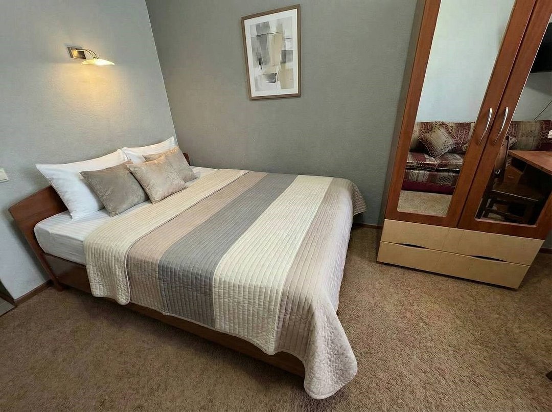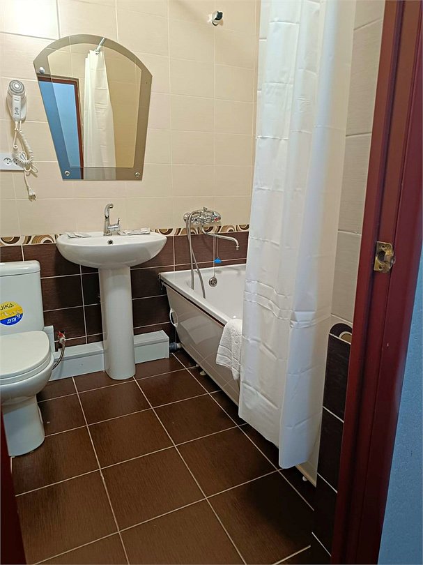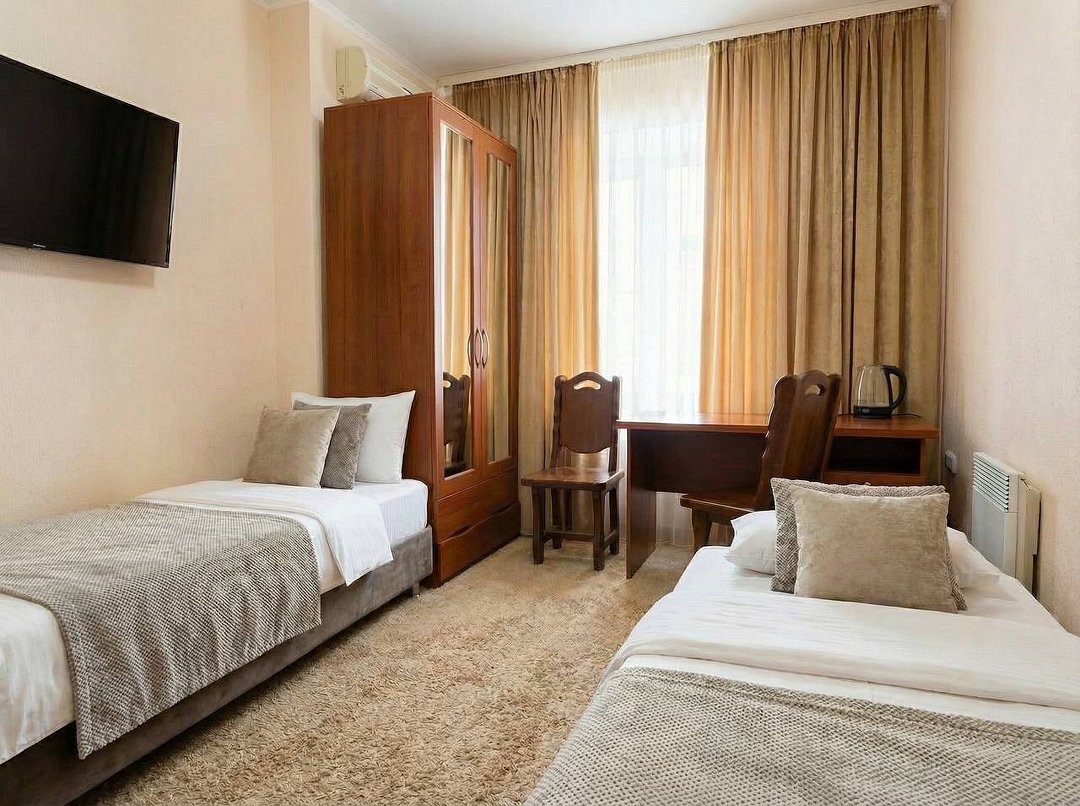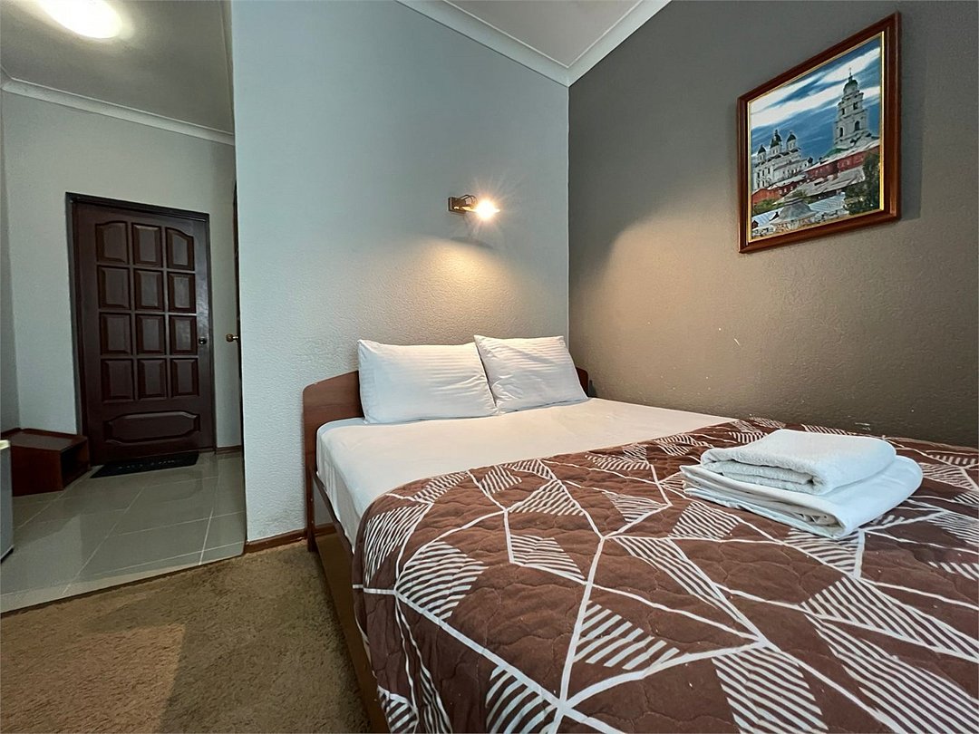 Удобный двухместный номер с двумя раздельными кроватями или одной большой кроватью. В номере есть все самое необходимое для комфортного проживания: вместительный шкаф и прикроватная тумба, кондиционер, телевизор, холодильник, ТВ, чайник. Ванная комната оснащена душевой кабиной, феном. Каждому гостю выдается мягкое полотенце и гигиенический набор.Услуги и удобства