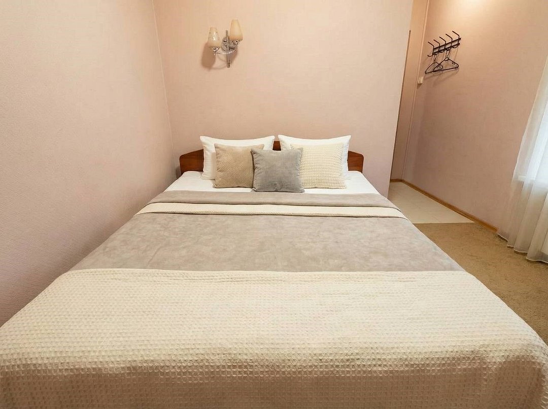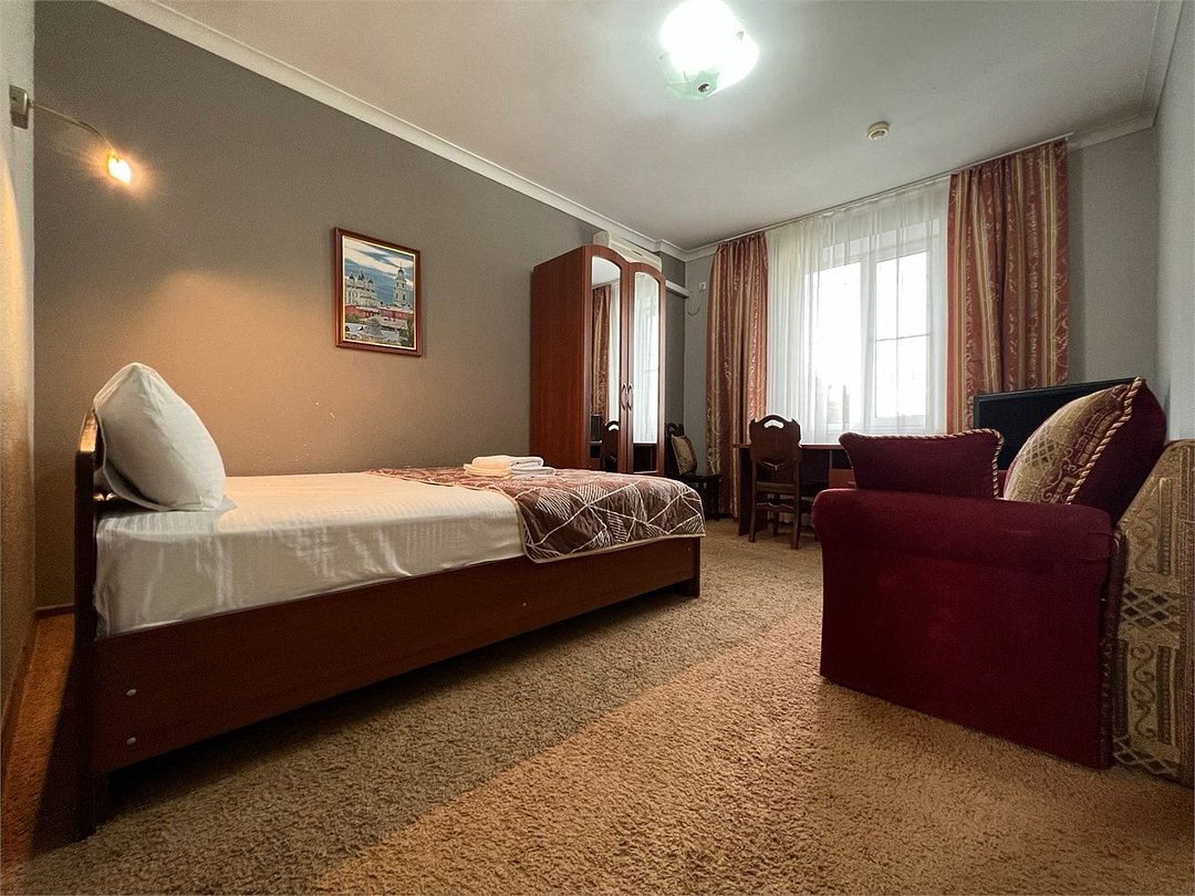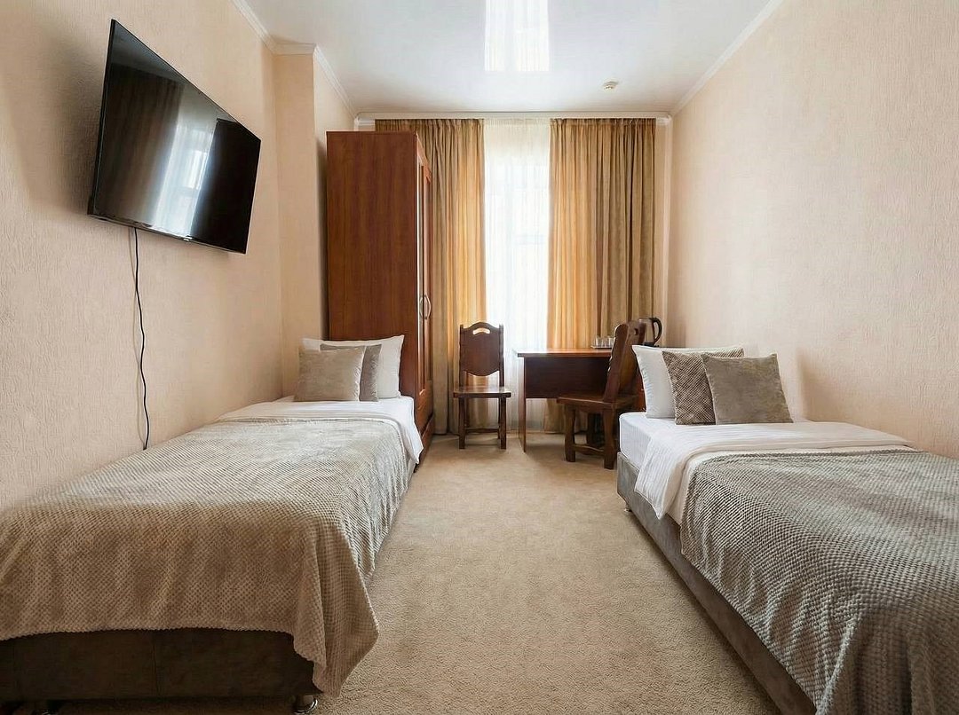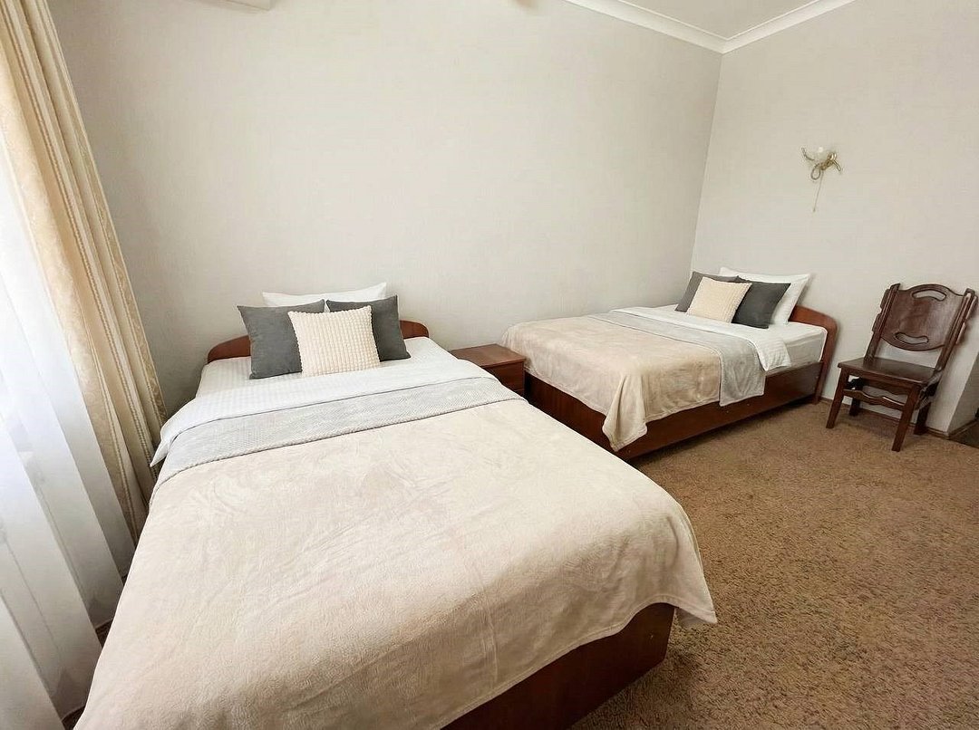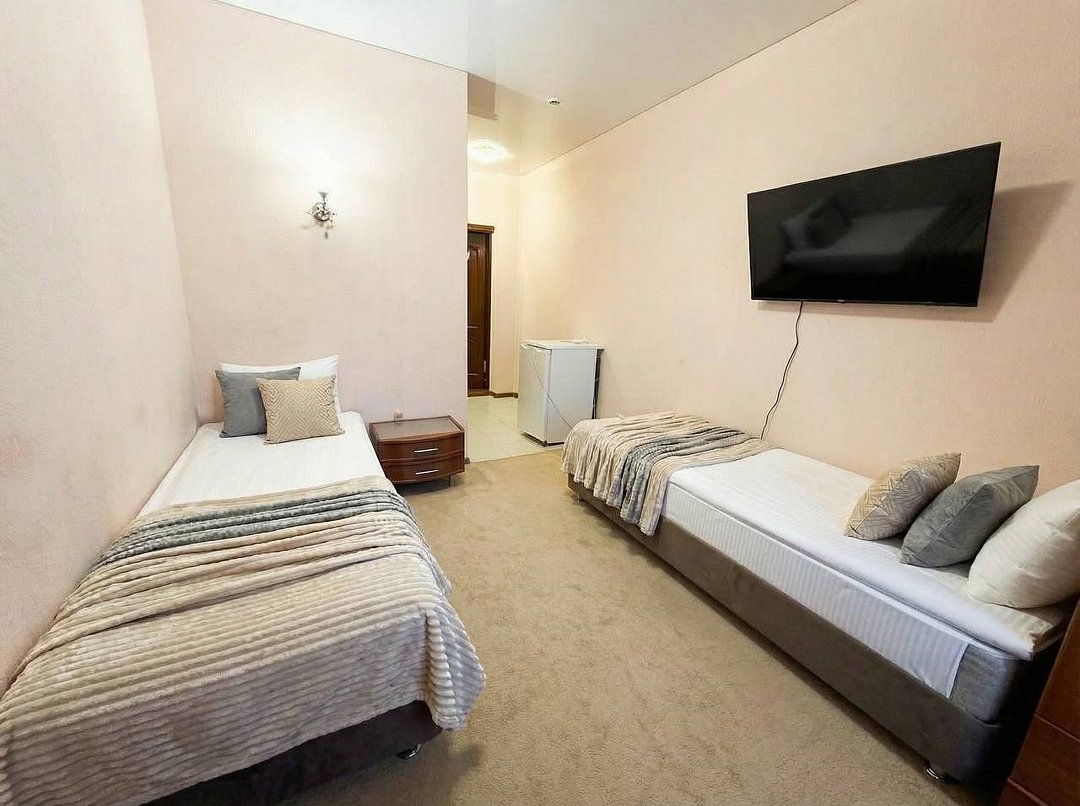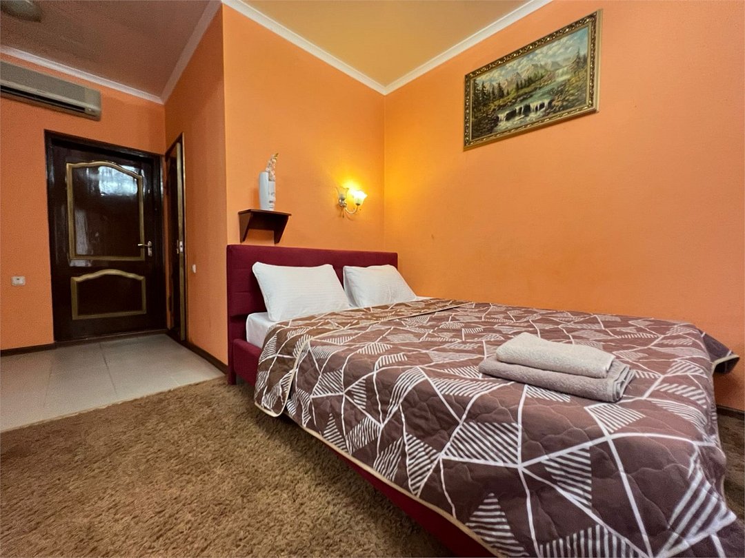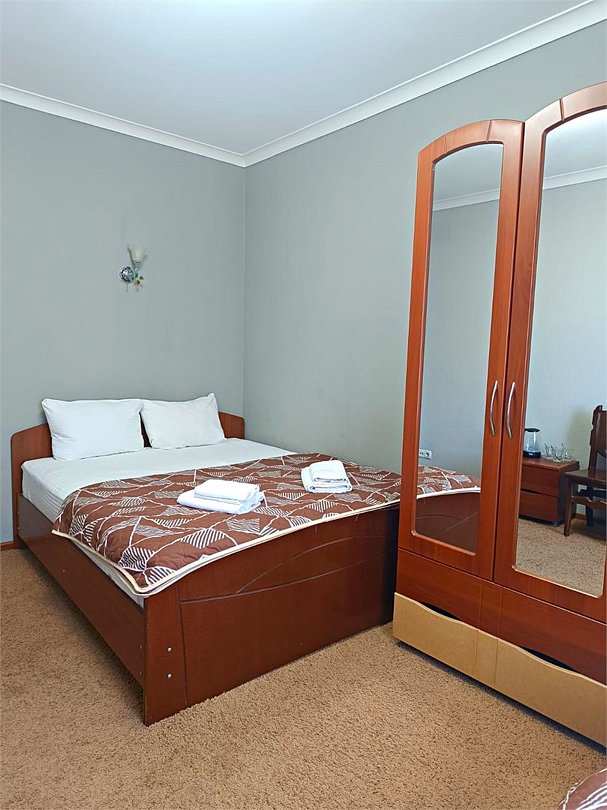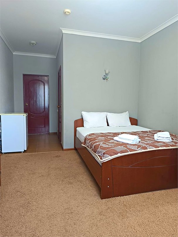 Просторный двухместный номер с двумя раздельными кроватями или одной большой кроватью, с возможностью поставить доп место. В номере есть все самое необходимое для комфортного проживания: вместительный шкаф и прикроватная тумба, кондиционер, телевизор, холодильник, ТВ, чайник. Ванная комната оснащена душевой кабиной, феном. Каждому гостю выдается мягкое полотенце и гигиенический набор.Услуги и удобства