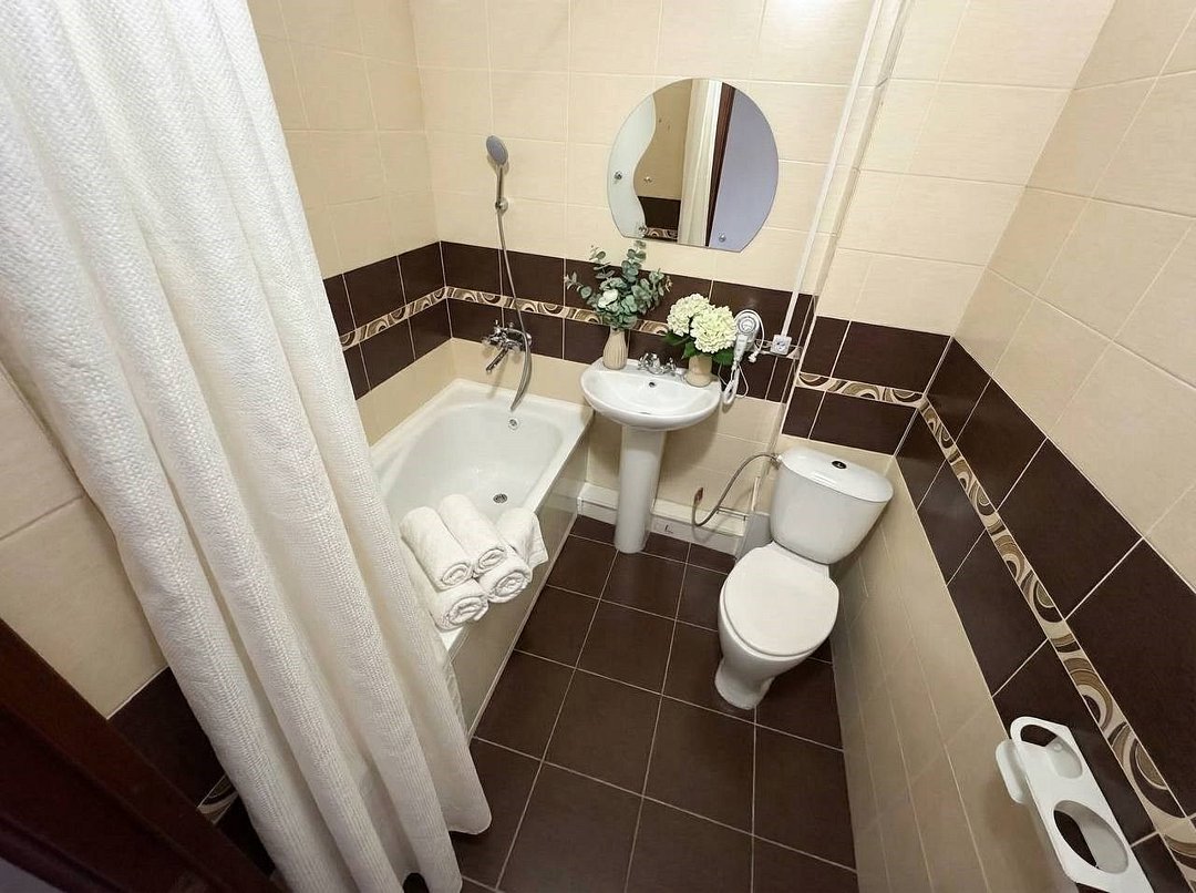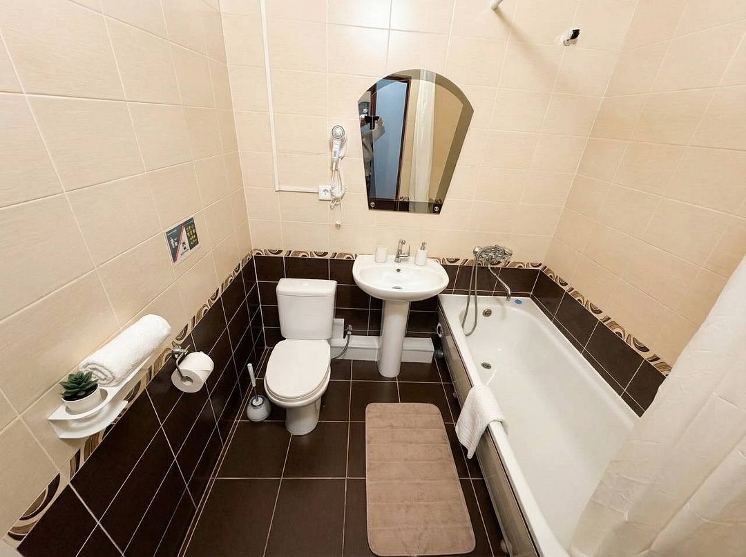 телевизор, Wi-Fi, холодильник, кондиционер, фен, гигиенические средства, набор посуды, чайник, душ, туалетВ гостиничном номере