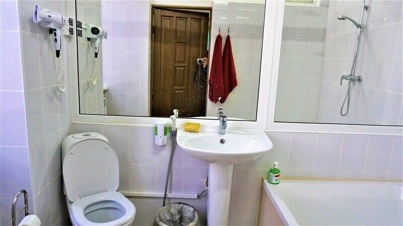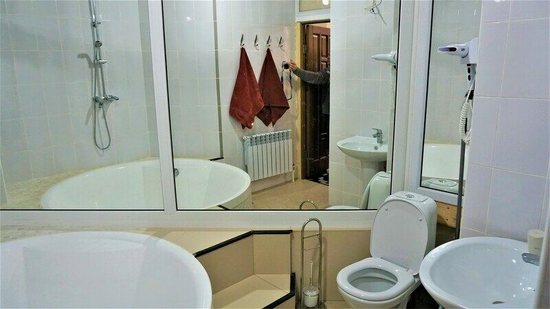 НедостаткиЕсть много не совсем понятных, лично для меня, моментов: во-первых, ванна, конечно, огромная, но в ней удобно, я к такому не привык. Да, я думаю для любого обычного человека, не привыкшего к роскоши, она будет неудобной. Во-вторых, в ванной есть огромное зеркало, когда моешься, немного странно себя ощущаешь, жутковато