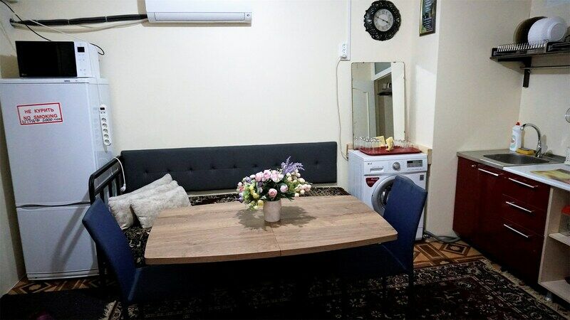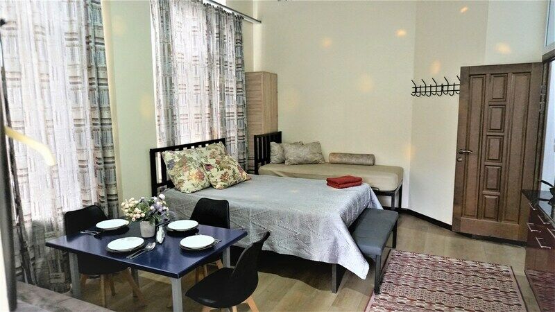 Стандартный номер: двуспальная кровать, кухня, ванная комната