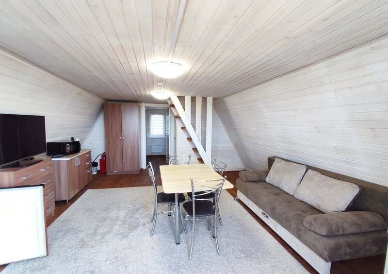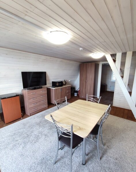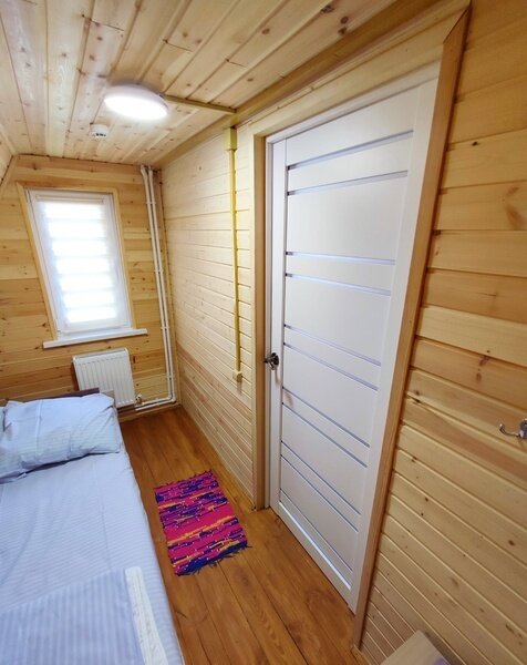 2-х этажный дом рассчитан для проживания до 4 человек. На первом этаже спальня, санузел, душ, гостиная. На втором этаже 4 кровати. В доме холодная и горячая вода, ТВ, микроволновая печь, холодильник, чайник. Рядом с домиком мангальная зона. Дом в котором будет комфортно разместиться большой семье или дружной компании.