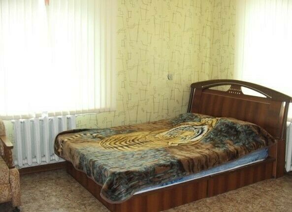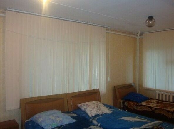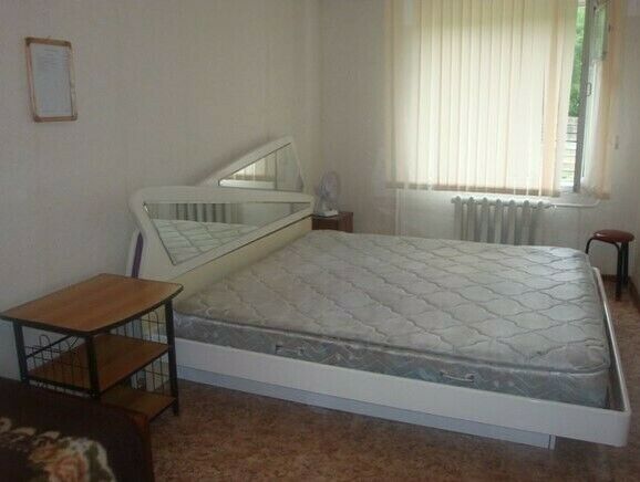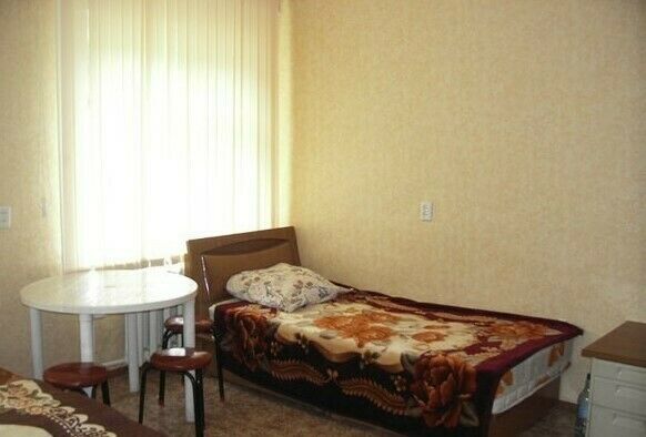 3 кровати, стол, стулья, вентилятор, вешалка для одежды, шкаф, телевизор.