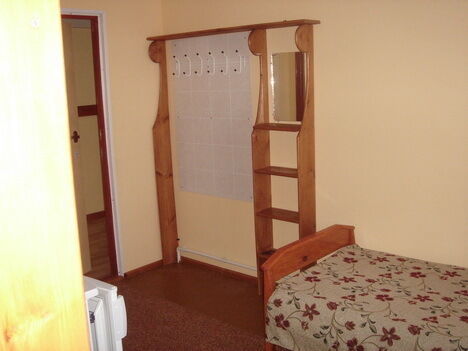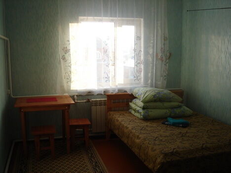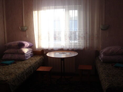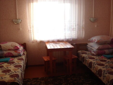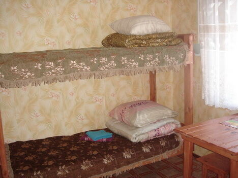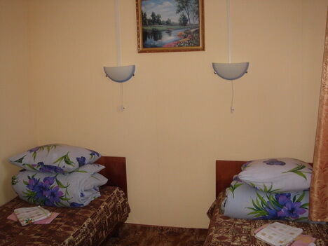 - В номере полутораспальная кровать, две односпальных (два яруса), холодильник, санузел в номере (унитаз, раковина, душ).