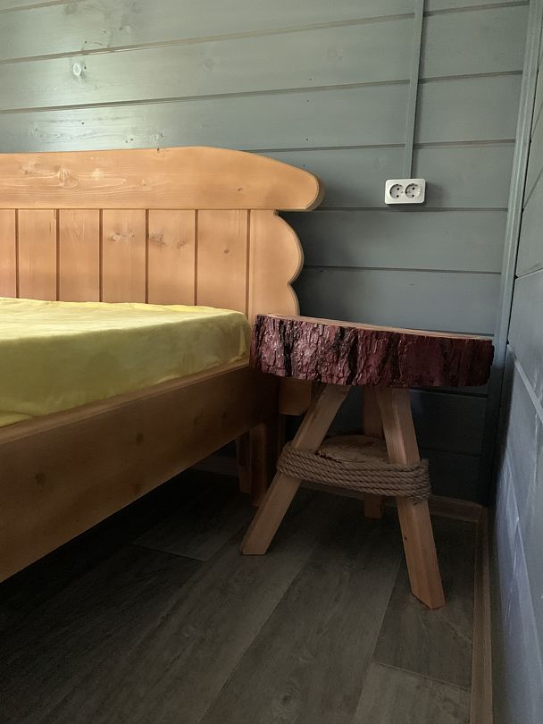 На 2 этаже: 2-х спальная кровать, тумба.