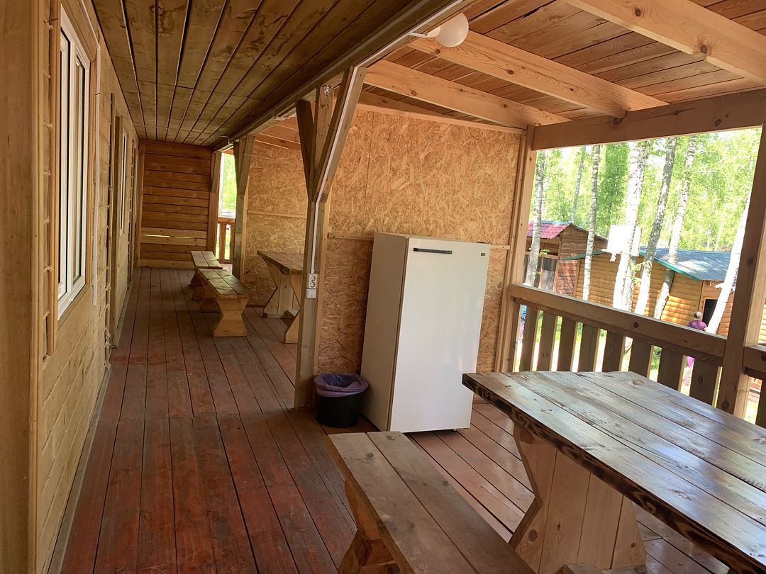 На веранде: стол, лавочки, холодильник. Душ один на два номера.