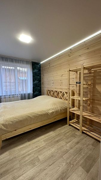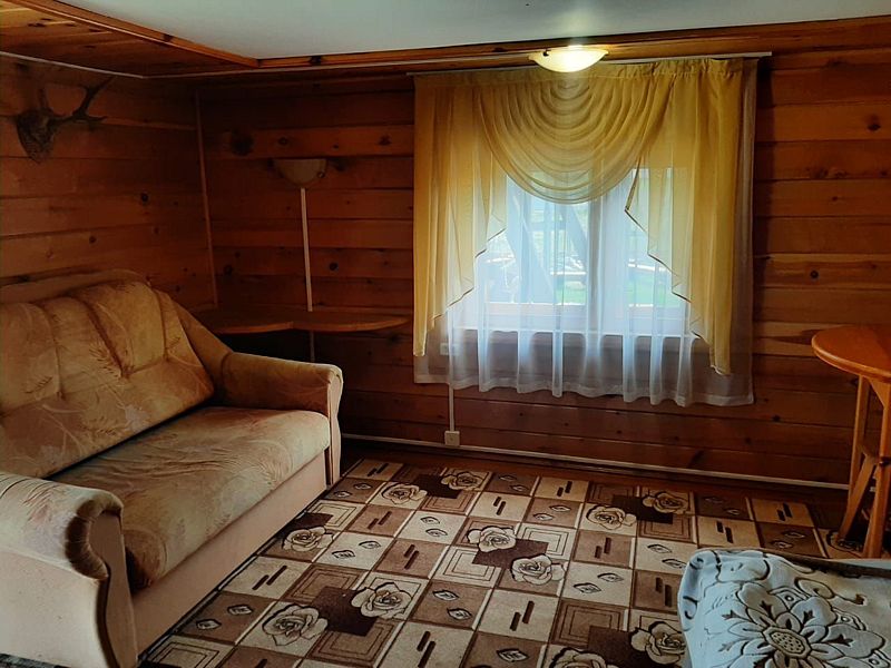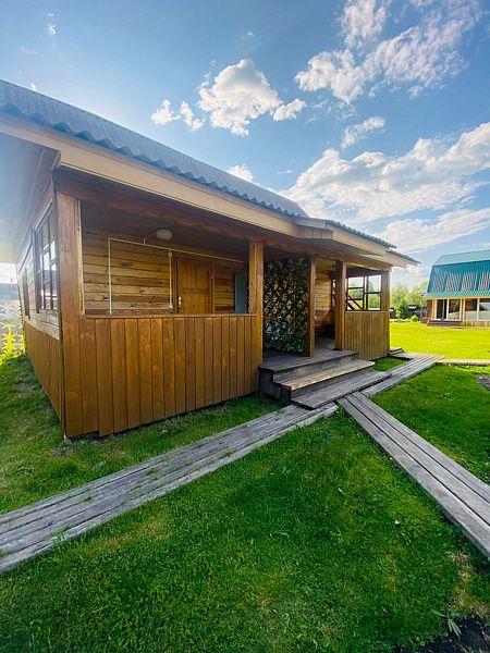 Благоустроенный двухкомнатный номер вместимостью до 5-ти человек. В номере: двуспальная кровать, двухъярусная кровать, кухня, санузел, веранда с панорамными окнами.