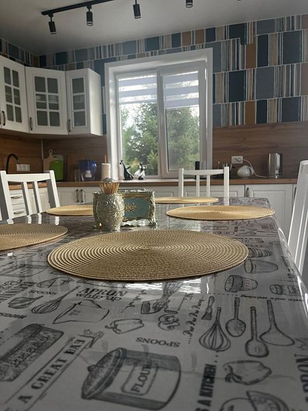 В кухне все необходимое для приготовления пищи: индукционная плитка, СВЧ-печь, чайник, холодильник, вся необходимая посуда. Вторая комната-просторная веранда с панорамными окнами, в которой размещается стол и кресло раскладное (доп. место).