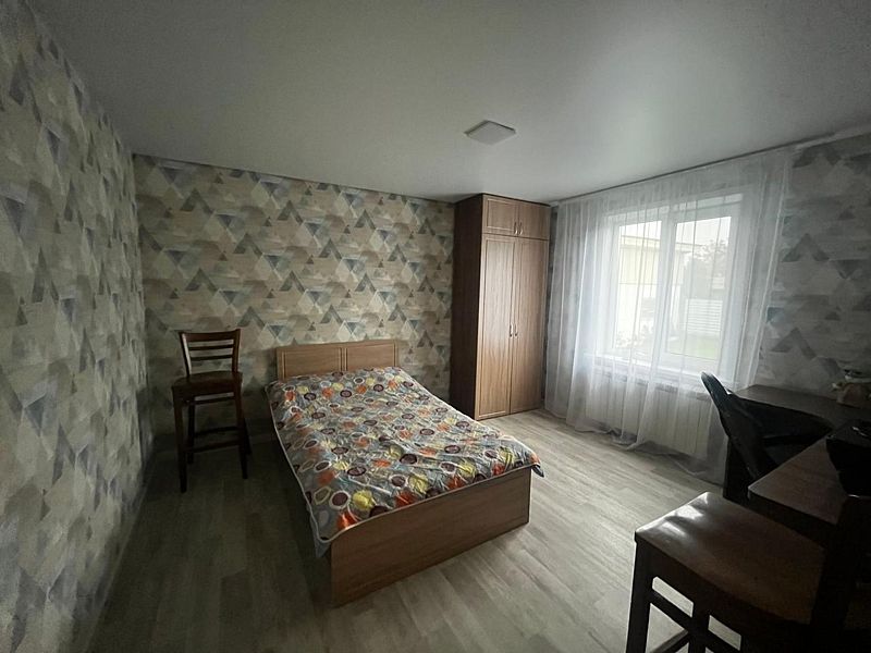 Однокомнатный номер, рассчитан до 4-х человек, вход с улицы. В номере: одна двуспальная кровать, раздвижной диванчик, шкаф, стол. Удобства на территории.