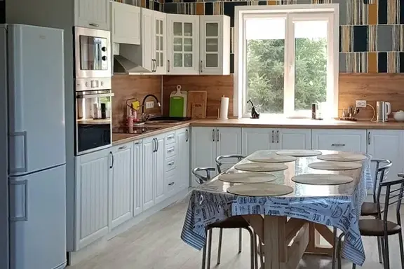 Душ, туалет, кухня.