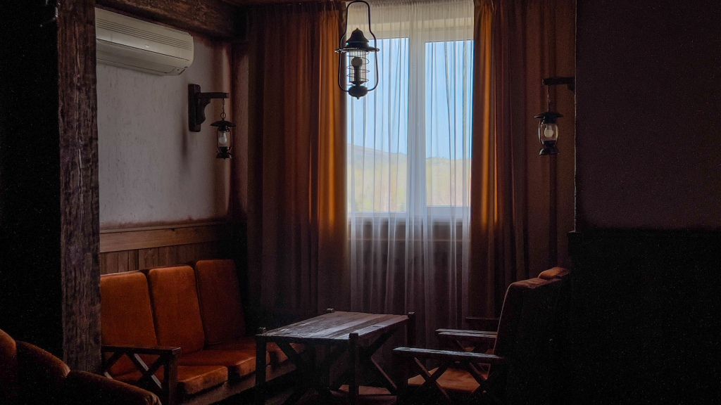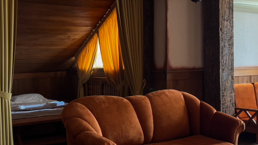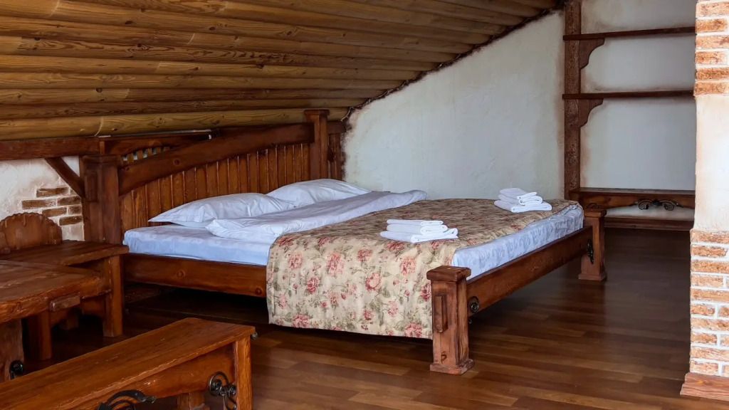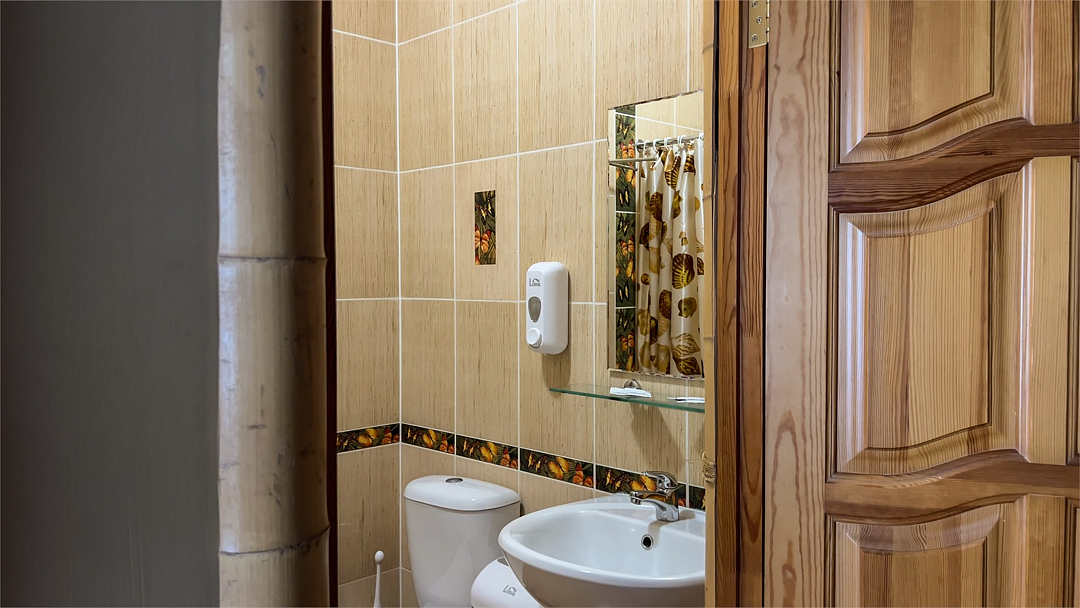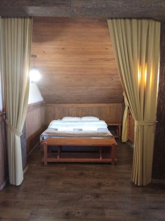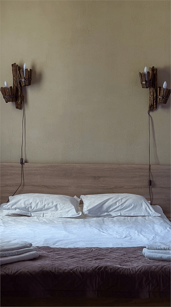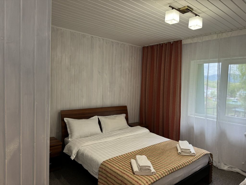 Отделка номеров выполнена с использованием натурального материала — дерева. Пол ковролин. Теплый пол. Номера расположены на 1 этаже.