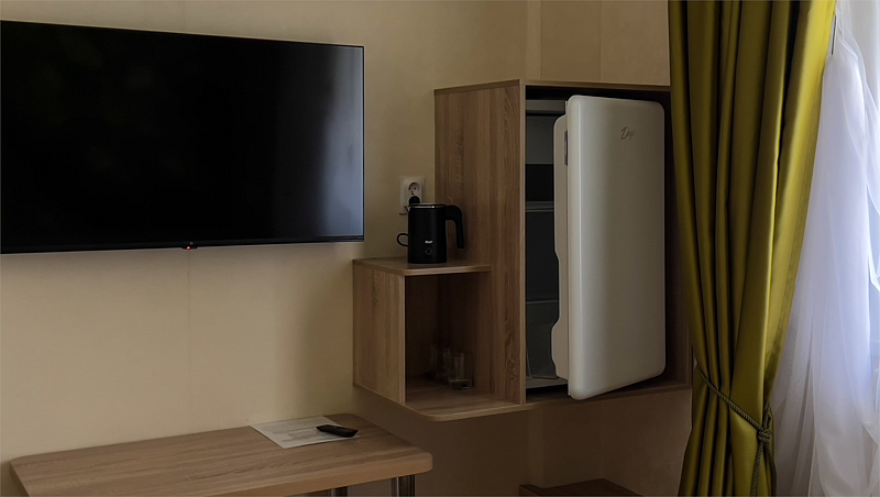 Во всех номерах имеются телевизор, холодильник и санузлы с душевыми. Категории номеров «апартаменты» и «студия» оснащены кондиционером.
