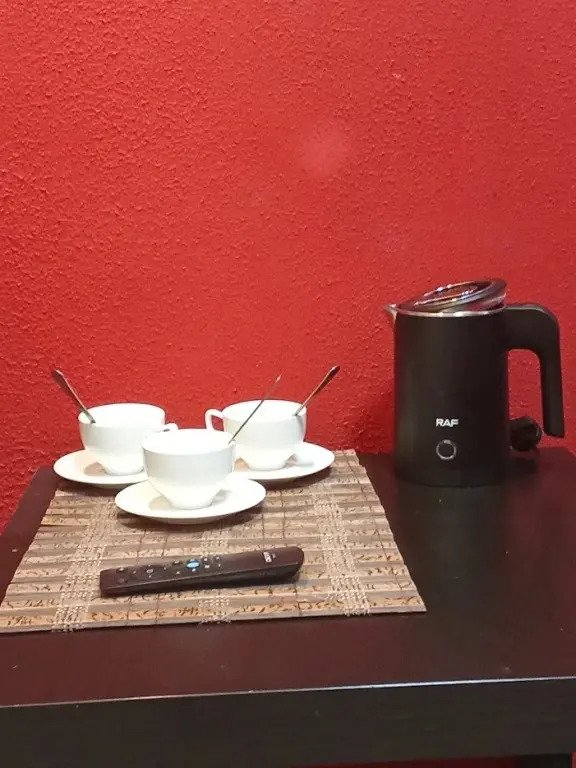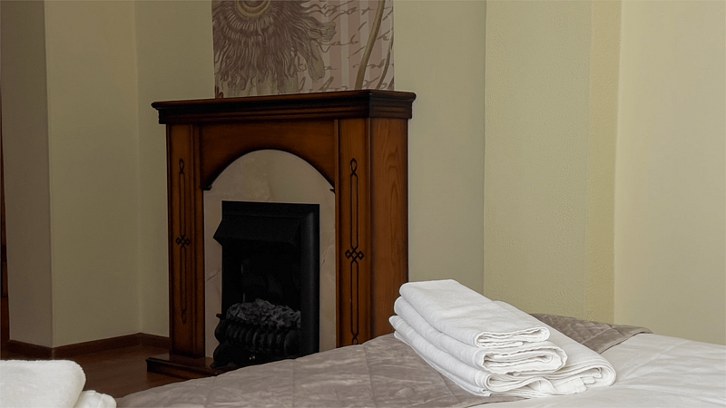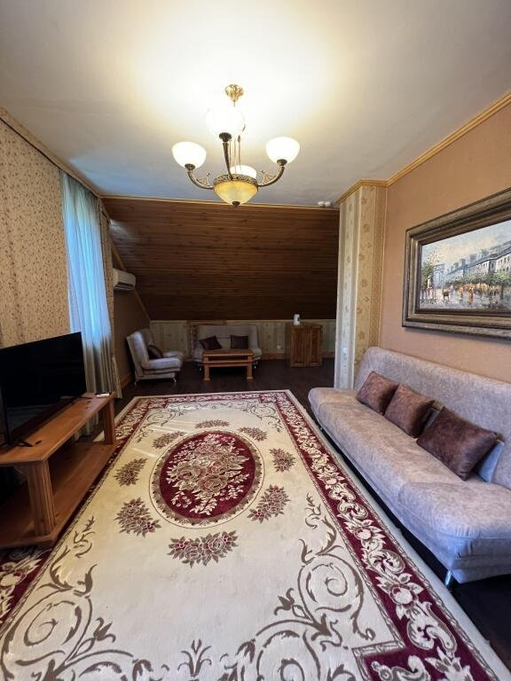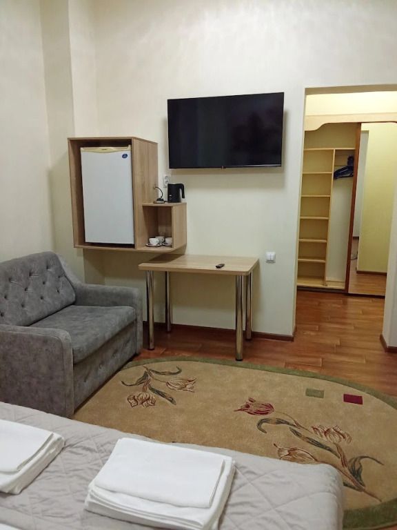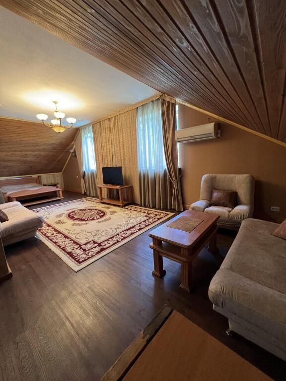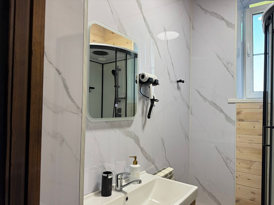 В номере двуспальная кровать, диван (140 см). Чайная комната — в холле на 2 этаже.