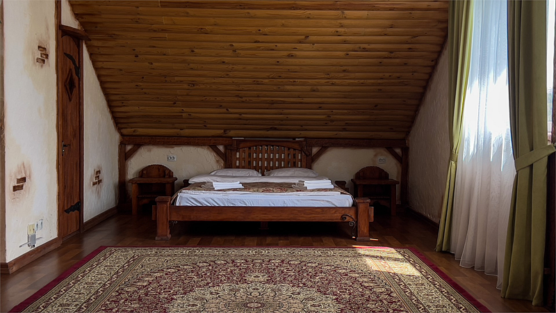 Трехэтажный комплекс на 15 номеров, стилизованные комфортабельные номера, отражающие культуру и быт разных стран мира, рассчитан на 30 основных и 20 дополнительных мест.
