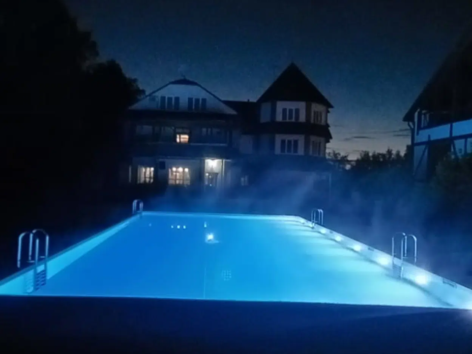 В бассейне с удобной зоной отдыха всегда чистая фильтрованная вода, которая прогревается уже в начале июня.