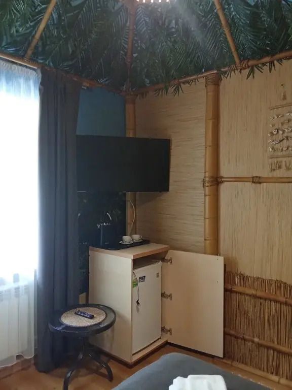 Авторский двухкомнатный номер, стилизован под хижину: стены из тростника, крыша из камыша и пальмовых веток.