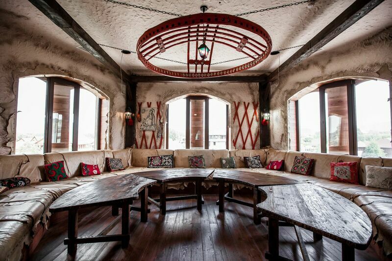Зонирование основного зала на небольшие диванные группы, позволяет гостям чувствовать себя комфортно и уютно, не теряясь в большом пространстве.