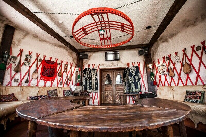 Читать полностьюВ ресторане Сар-Герел Алтая на первом этаже находится большой зал на 100 человек, на втором этаже: бильярдный зал, караоке, конференц-зал и летняя веранда. В интерьере использован национальный колорит Алтая, где яркие цвета сочетаются с мягкими и теплыми оттенками бежевого.