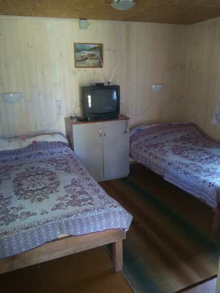 В номере: 2 односпальные кровати, комод, вешалка, общая кухня для приготовления и приема пищи, туалет и летний душ на улице.