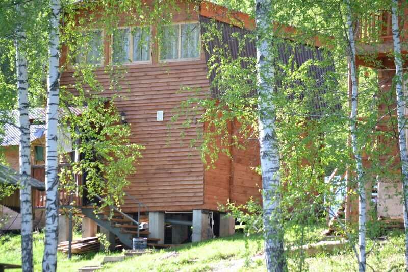 Гости базы проживают в деревянных домах раной комфортабельности. Есть одноэтажные, двухэтажные и даже трехэтажные дома. Здесь одновременно могут заселиться не более 45 постояльцев. Всего на территории комплекса 13 комнат.
