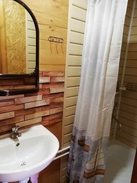 2-х этажный благоустроенный коттедж на 4 основных и два дополнительных места. В прихожей находится туалетная комната, в которой находятся душевая кабина, унитаз, умывальник и водонагреватель.