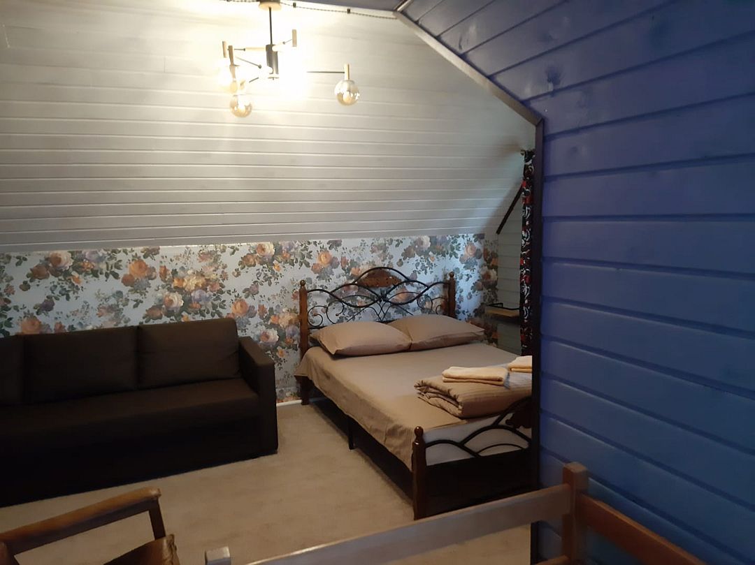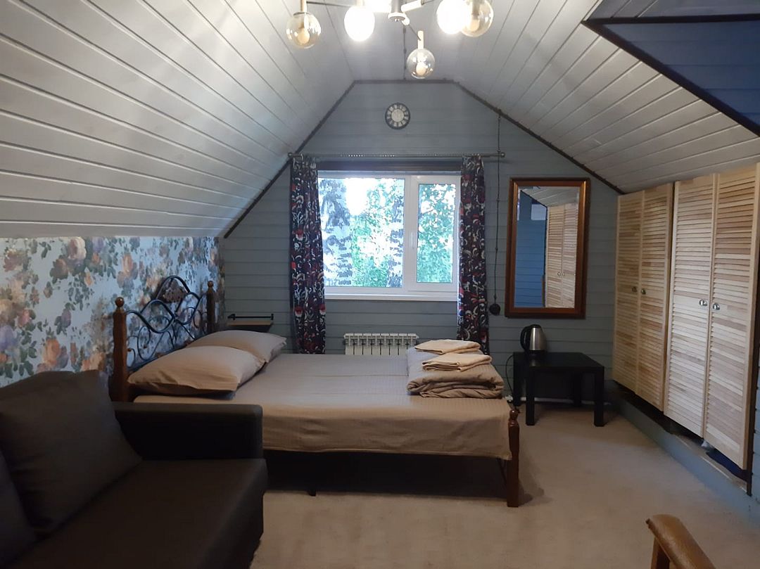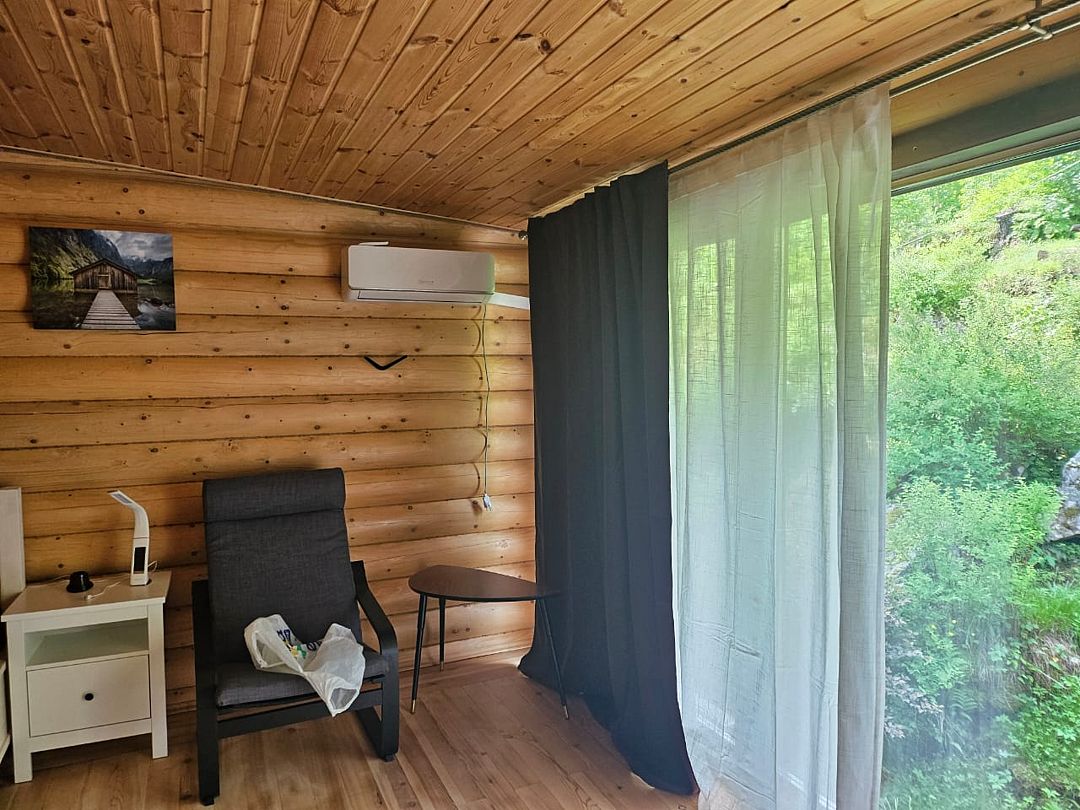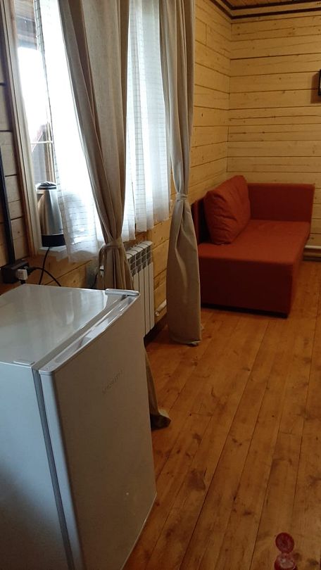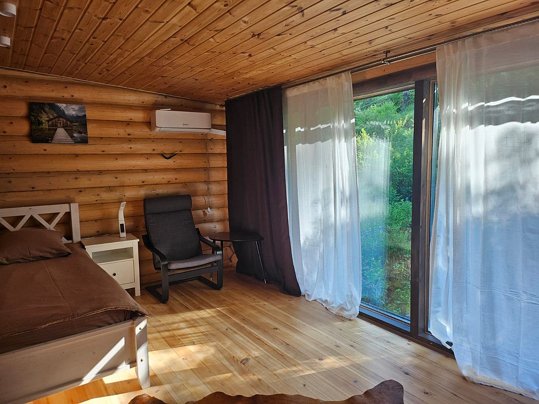 Гостям предлагается комфортное размещение в деревянных домиках с удобствами и без удобств. Просторные комнаты обставлены мягкой мебелью, есть телевизор и холодильник, мини-бар, постельное белье и полотенца. В ванной комнате установлены душевая кабина и санузел.