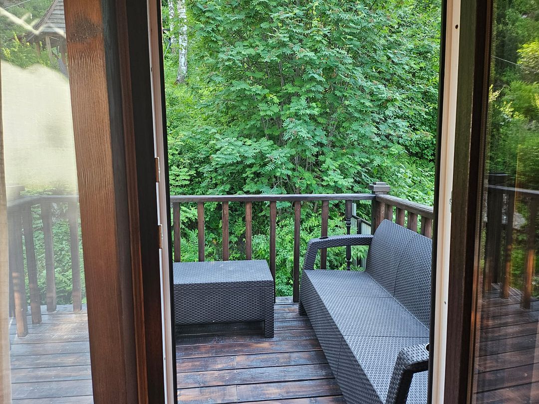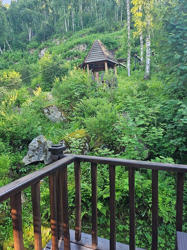 В любое время можно посетить отдельно кедровую баньку с комнатой отдыха с видом на скалы, берёзовый веник вылечит Вас от всех недуг.