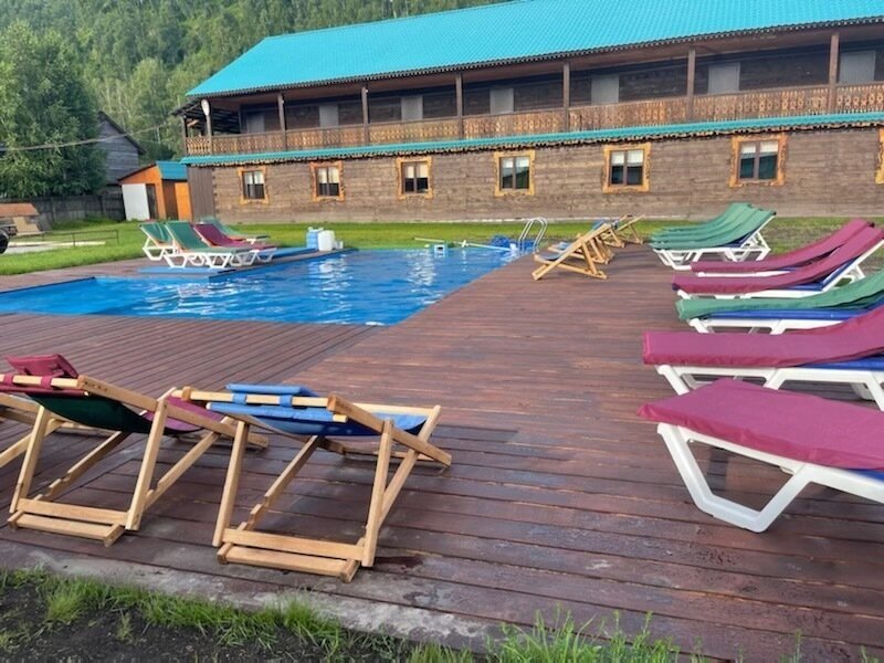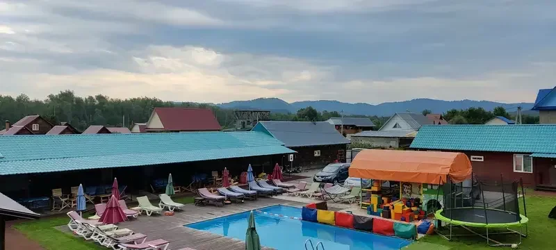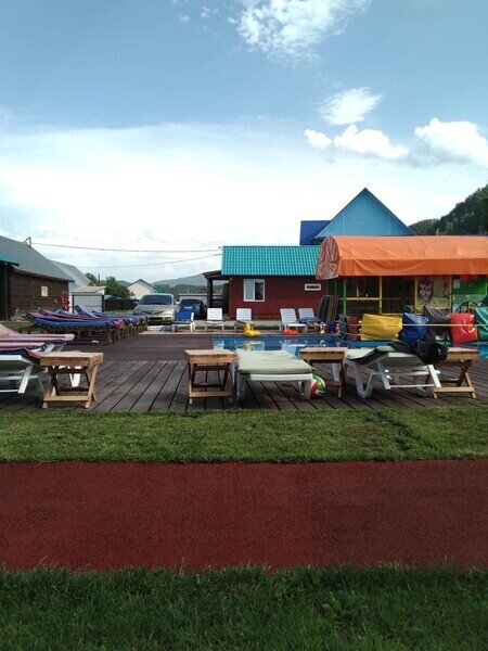 Инфраструктура: шапочкиМинимальное время аренды: 2 часаВремя работы: до 23.00На территории туристической базы вы сможете посетить настоящую Русскую баню, отдохнуть в специальной комнате и искупаться в бассейне. Алтайский чай и мёд в подарок.