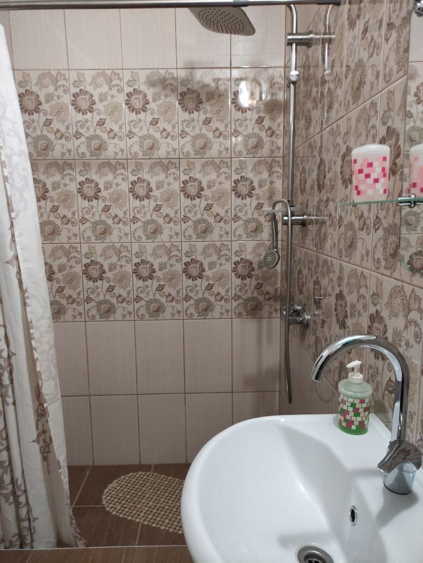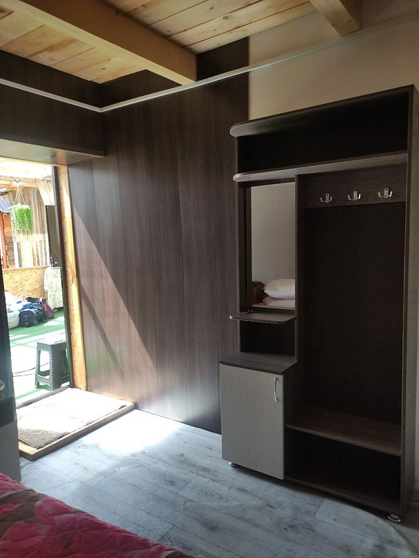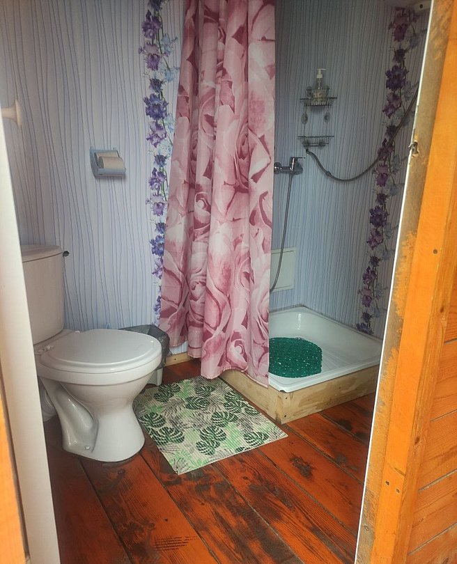 В номере имеется санузел, совмещенный с душем, свой водонагреватель на пятьдесят литров воды. Приготовление пищи предусмотрено на общей веранде, на которой стоит плита, микроволновка и термочайник.