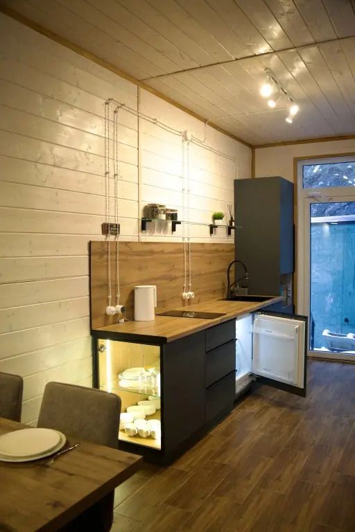 Оснащение коттеджа: микроволновая печь, индукционная плита, капсульная кофемашина, холодильник, чайник. Красивая столовая посуда. Средства индивидуальной гигиены премиум класса.