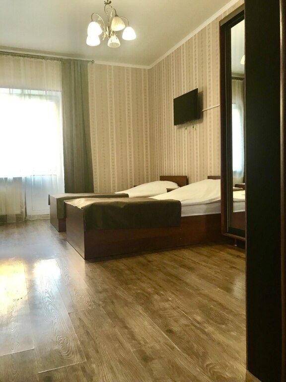 Номер выполнен в классическом стиле, оборудован двухспальной кроватью. Большой шкаф. Раскладной диван и кресло. Письменный столик. Плазменный телевизор со спутниковым TV. Бесплатный, скоростной Wi-Fi. Мини-Холодильник. Душевая кабина. Раковина. Санузел.