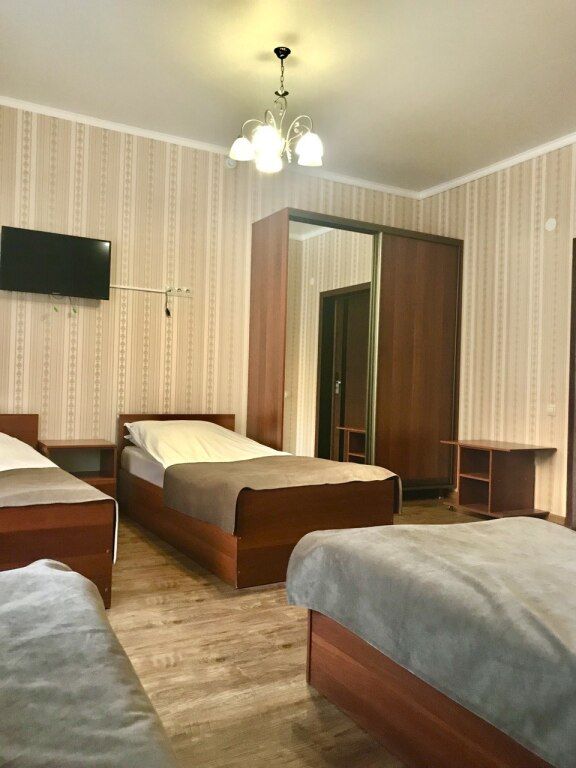 Четырехместный номер с раздельными кроватями. Номер оснащен всеми удобствами: - TV - WI-FI - Ванная комната/ душевая кабина - Санузел - Раковина - Зеркало - Полотенцесушитель - Полотенца
