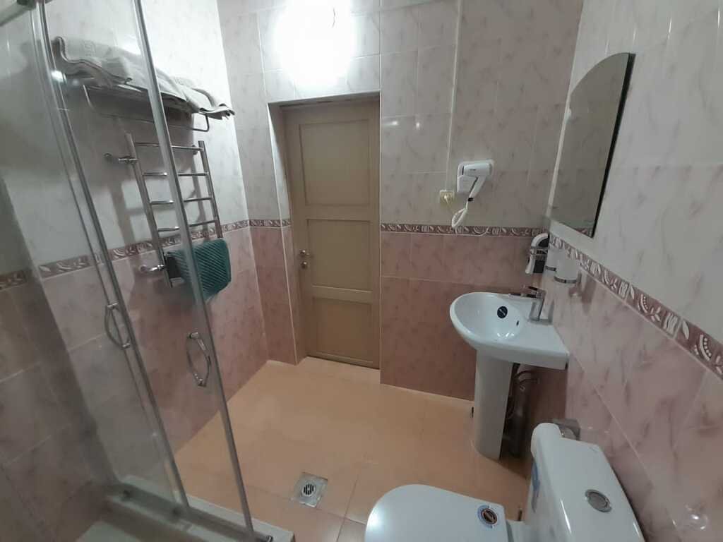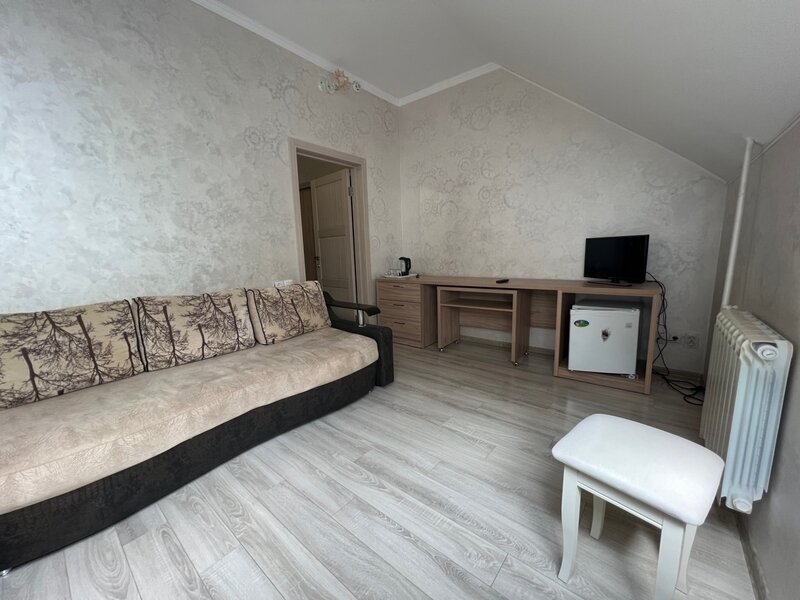 Вместительный двухкомнатный номер со всеми удобствами: Wi-Fi, телевизор, двуспальная кровать, диван. Шикарный интерьер с декоративными элементами, современной мебелью. Рядом с отелем есть удобная парковка. Из окна открывается прекрасный вид , местные достопримечательности. В номере созданы все условия для комфортного проживания, регулярно проводится уборка. В ванной находятся полотенца и гигиенические принадлежности. В номере есть тумбочки для хранения вещей, шкаф для одежды, компактный столик.