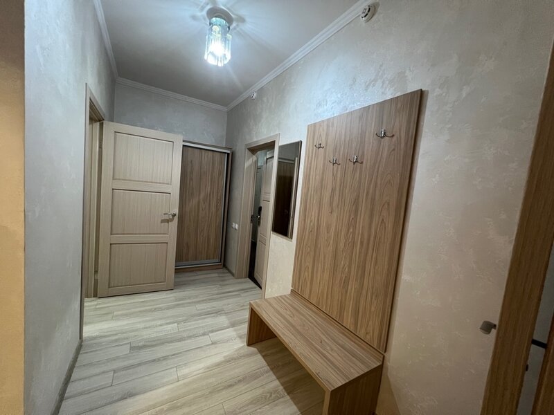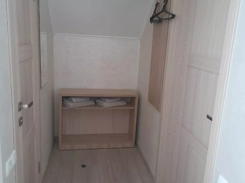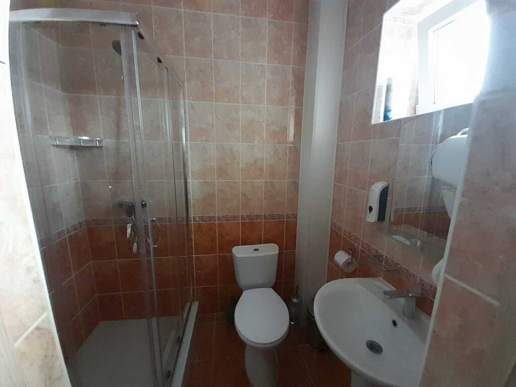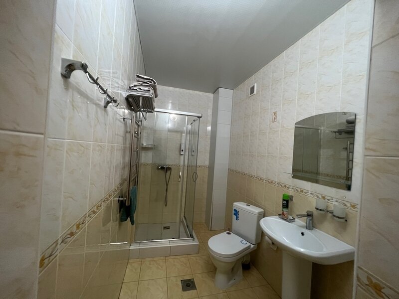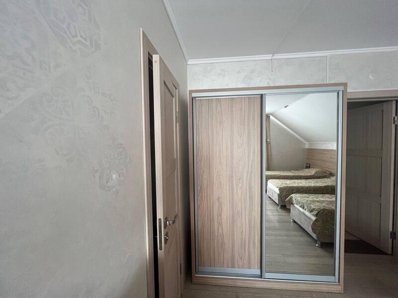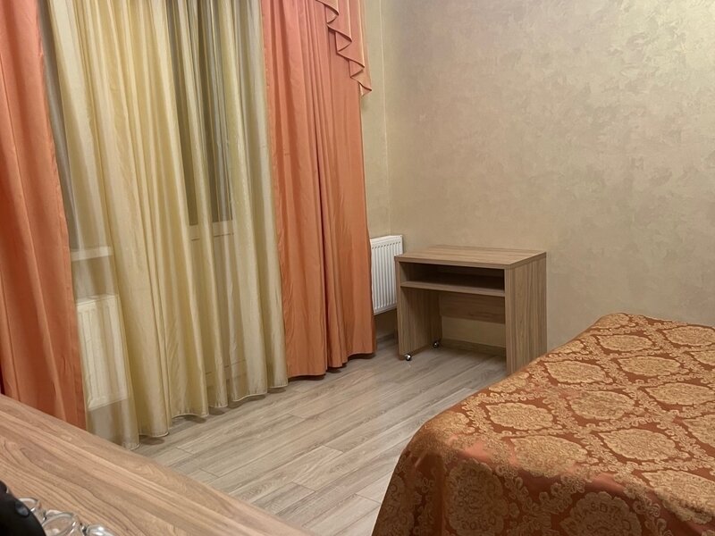 Однокомнатный номер: 2 кровати, шкаф для вещей, 2 тумбочки, зеркало, журнальный стол, ТВ, диван-кровать на двоих, комод с зеркалом, санузел (душевая кабина), холодильник. Есть номера с балконом.
