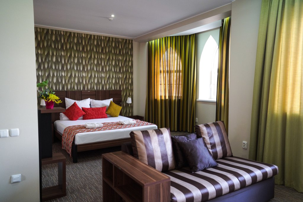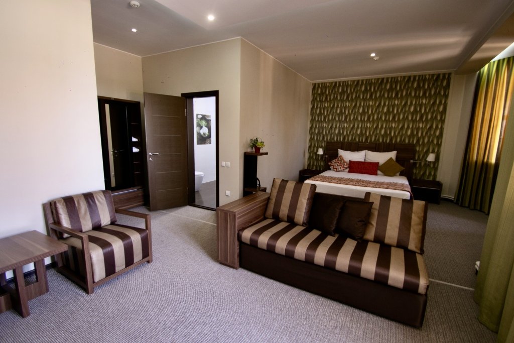 В номере гостей ждут телевизор и халат. Перечисленные услуги есть не во всех номерах.