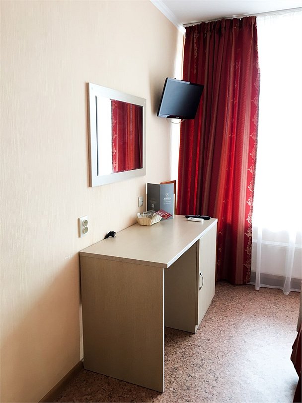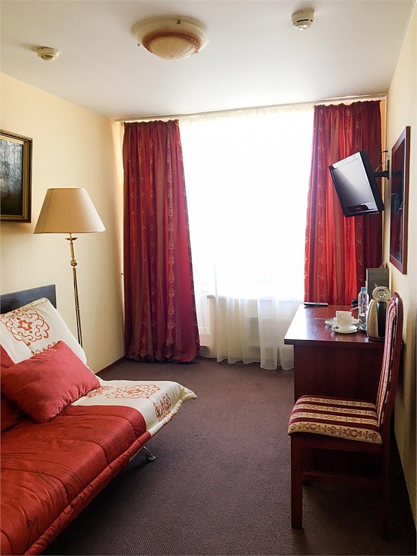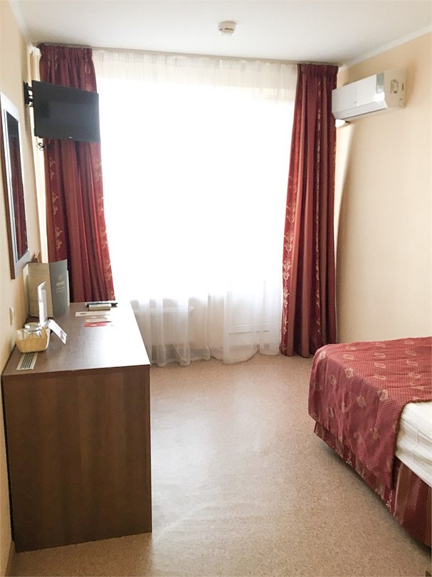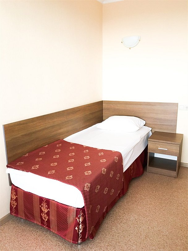 Площадь номера 18 кв.м. Размещение в номере - 1 чел. В прихожей: встроенный шкаф, чемоданница, зеркало. Комната: две кровати (90*200), прикроватные тумбочки, столик, телевизор, сейф, кондиционер, бесплатный Wi-Fi. Ванная комната: туалетные принадлежности, комплект полотенец, полотенцесушитель, фен, тапочки(по запросу). Номера для некурящих.Услуги и удобства