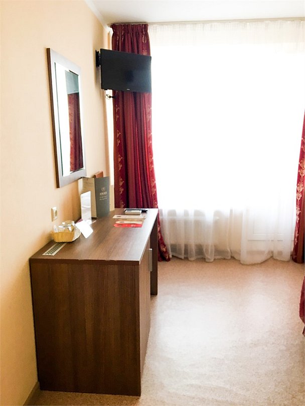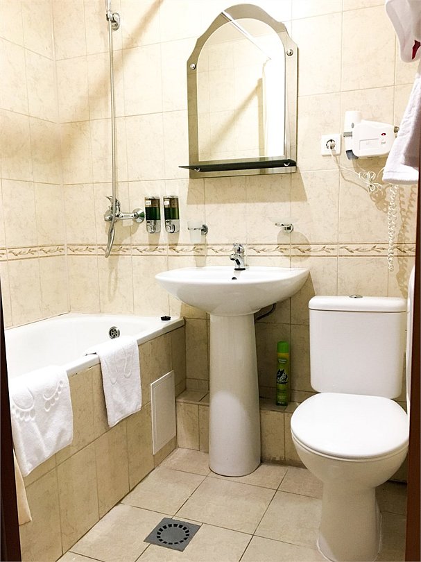 Площадь номера 18 кв.м. Размещение в номере - 2 чел. В прихожей: встроенный шкаф, чемоданница, зеркало. Комната: две кровати (90*200), прикроватные тумбочки, столик, телевизор, сейф, кондиционер, бесплатный Wi-Fi. Ванная комната: туалетные принадлежности, комплект полотенец, полотенцесушитель, фен, тапочки. Номера для некурящих.Услуги и удобства