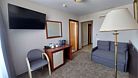 Площадь номера 30,3 кв.м. Размещение в номере – до 2 чел. В прихожей: встроенный шкаф, чемоданница, зеркало. Комната: двуспальная кровать (160*200), прикроватные тумбочки, диван, журнальный столик, телефон, телевизор, кондиционер, сейф, бесплатный Wi-Fi. Ванная комната: туалетные принадлежности, комплект полотенец, полотенцесушитель, бритвенный набор, фен, халат, тапочки.Услуги и удобства