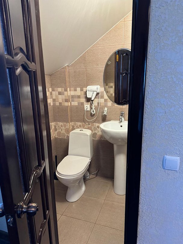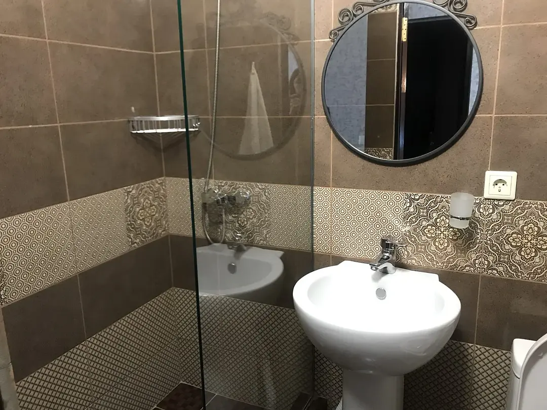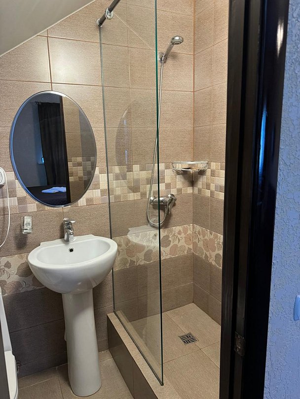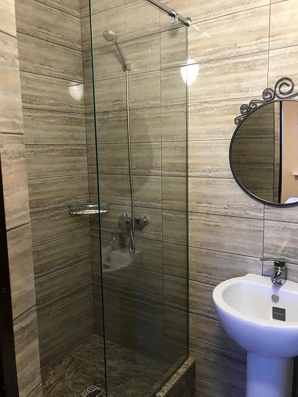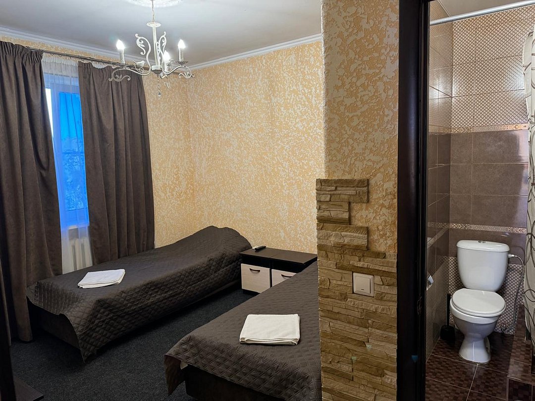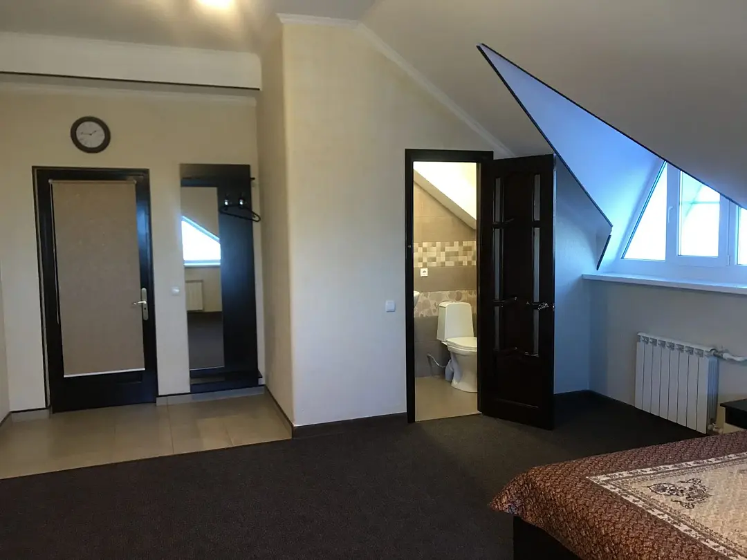 В номере: ЖК-телевизор, кондиционер, одна большая кровать (180×200), диван, холодильник, мебель, собственный санузел с душевой кабиной, туалетные принадлежности.