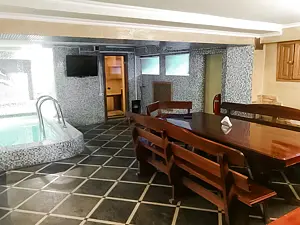 Инфраструктура: бассейн, зона отдыха«Рогожкино» предлагает своим гостям просторную сауну с комфортной зоной отдыха, оборудованной системой караоке и спутниковым телевидением. В этой зоне расположены стол со скамьями, бильярдный стол и вместительный бассейн, создающие идеальные условия для расслабления и развлечений.